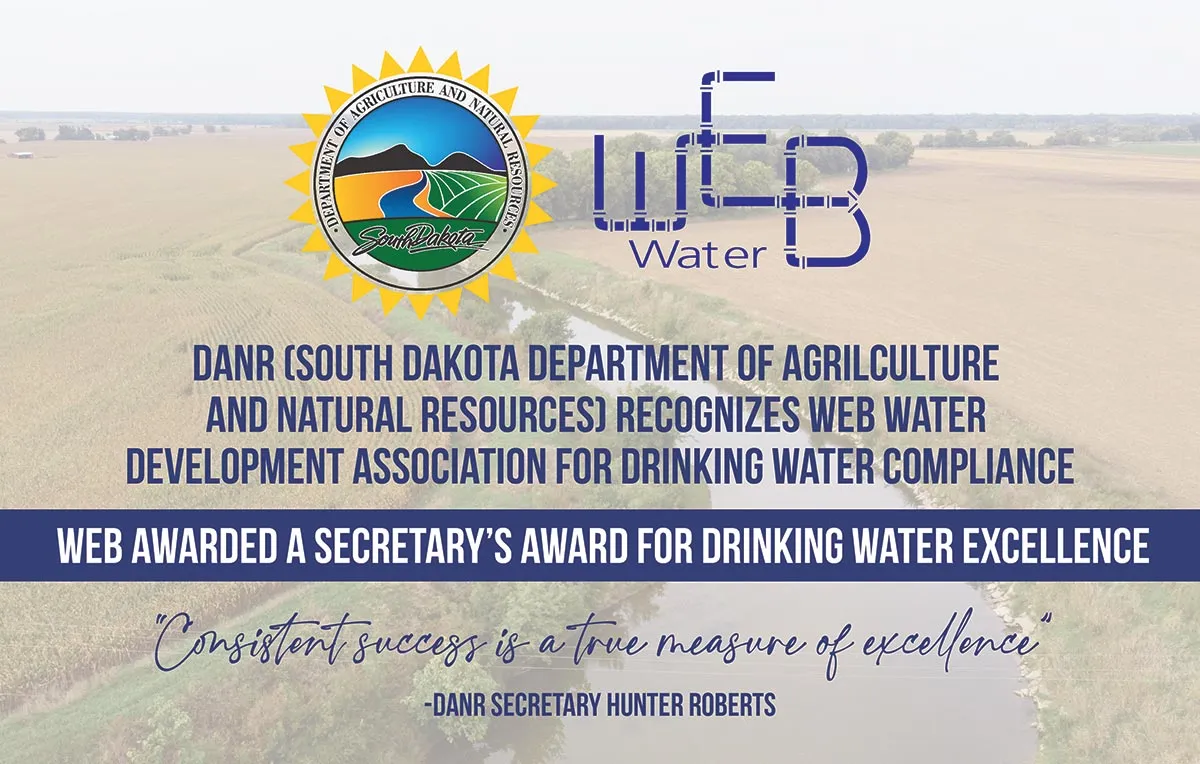 "Consistent success is a true measure of excellence," said DANR Secretary Hunter Roberts. "With more than 13 years of consecutive compliance, the WEB Water Development Association has demonstrated its commitment to providing its customers with safe and reliable drinking water.".