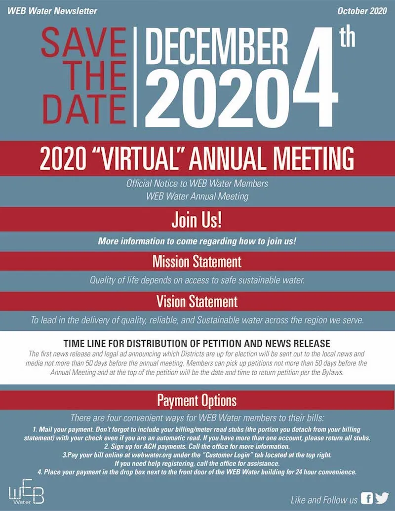 2020 "Virtual" Annual Meeting will be held December 4, 2020